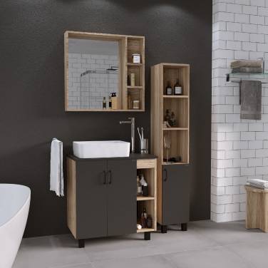 Столешница Флай 80 cм выполнена из МДФ: серая матовая пленка с покрытием SoftTouch придаст современный вид и позволит установить накладную раковину. Отверстие под смеситель в правом углу